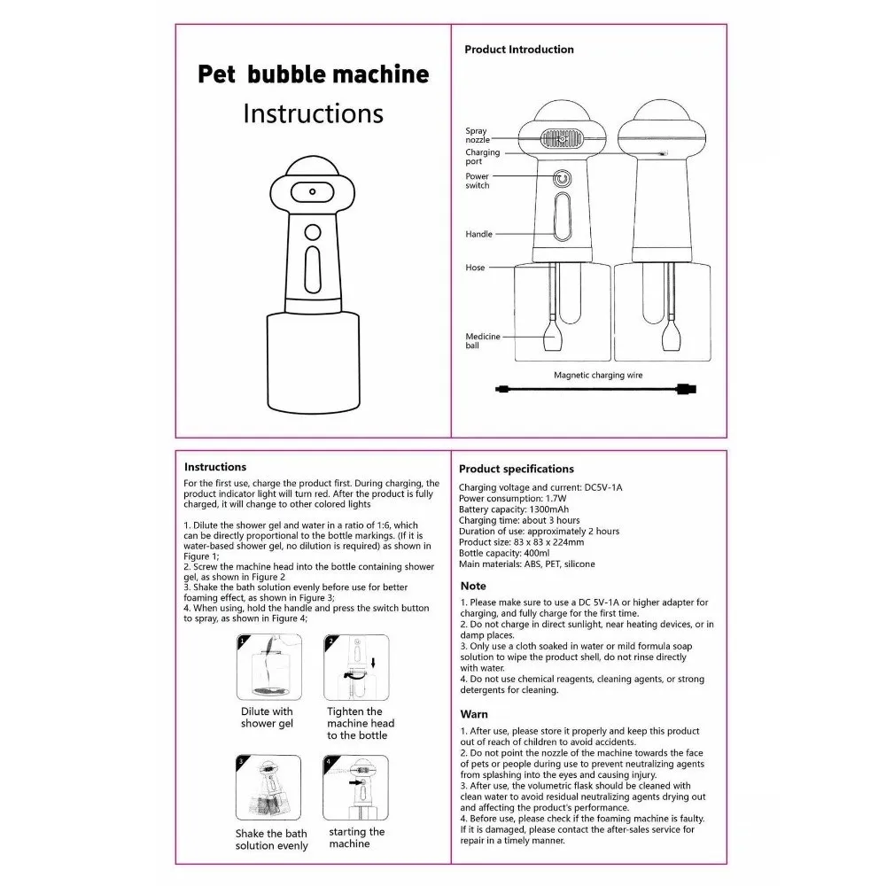 Automatic Foaming: Cleaning Foam Machine Spray Tool can spray foam by just pressing the button, effortlessly, and gentle to pets skin