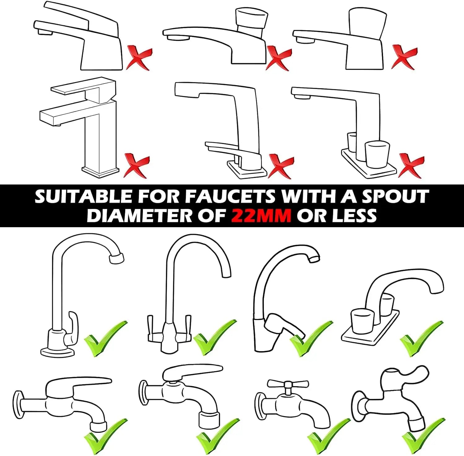 【Kindly Attention for Faucet Size】Faucet sprayer attachment opening is 1.2 inches, is suitable for round faucet, not suitable for square faucets, old fashioned faucets, bathtub faucets, Be sure to measure your faucet's diameter and faucet shape to assure correct size before purchasing.