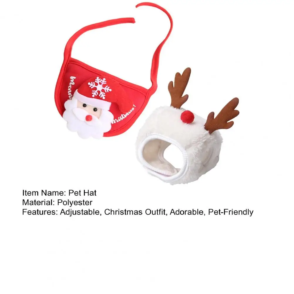 Cozy Pet Christmas Outfit Festive Pet Accessories Festive Christmas Pet Outfit Set with Tree Pom-pom Hat Bib for Small Dogs Cats