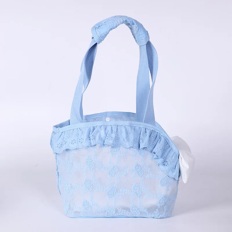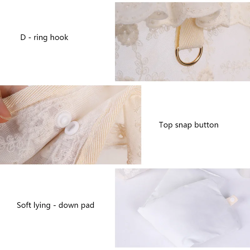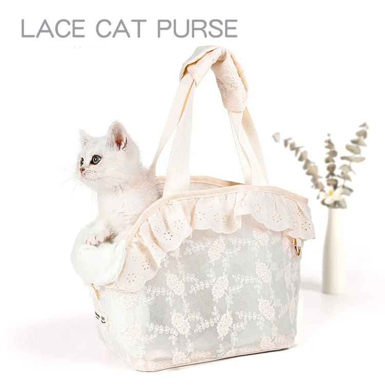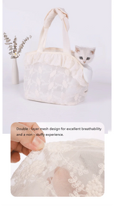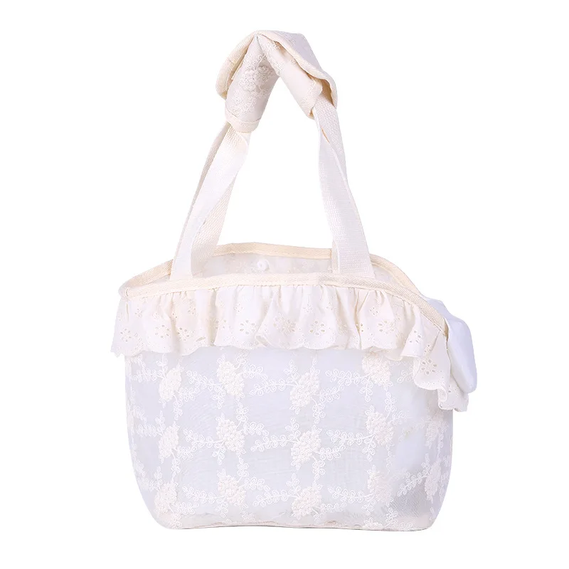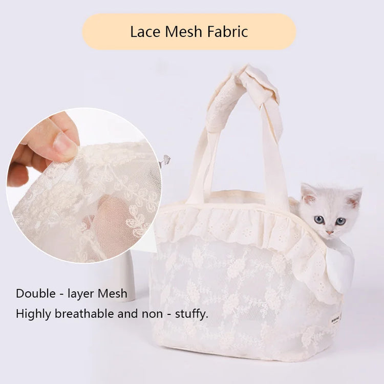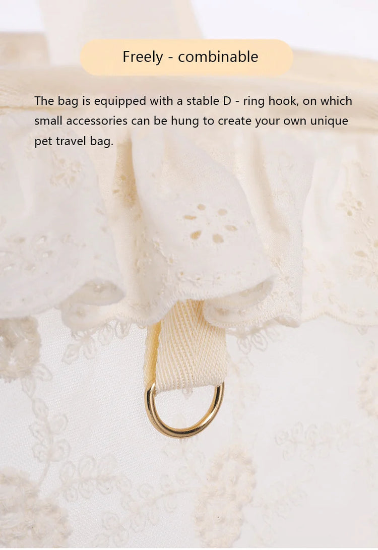 Dog Carrier Bag Lace-Design Ventilated with Safety Buckle Summer Pet Handbag for Small Pets Pet Carrier Bag with Soft Pad