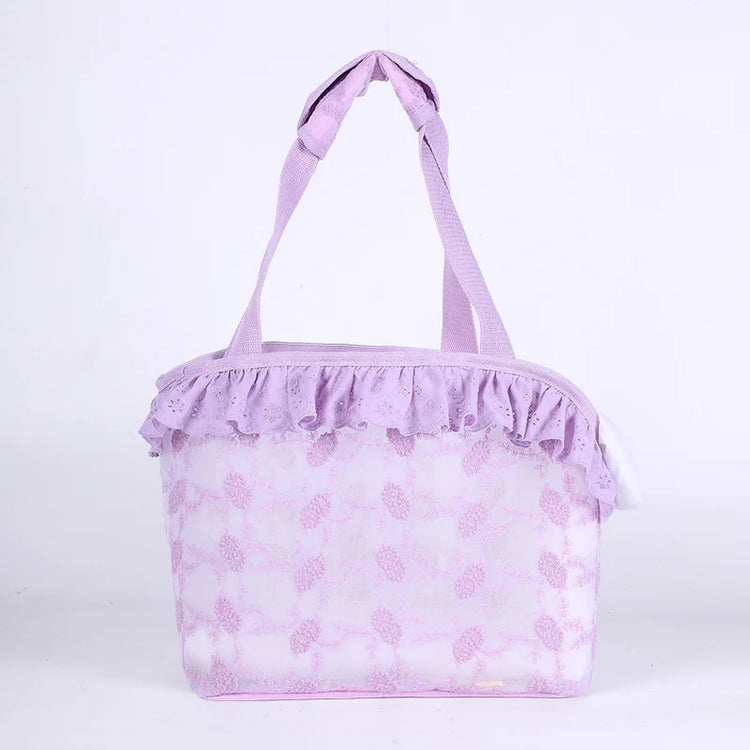Dog Carrier Bag Lace-Design Ventilated with Safety Buckle Summer Pet Handbag for Small Pets Pet Carrier Bag with Soft Pad