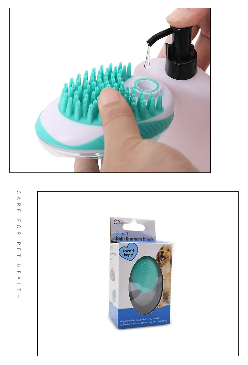 1. 2-in-1 Bath Brush Design:This brush can use for bath and grooming. Help remove dirt, mud and loose hair from your cats or dogs' fur and paws and makes it fresh and clean. Can deshedding, massaging, exfoliating, relaxing, all in one multi-function that make your pet enjoy bathing.