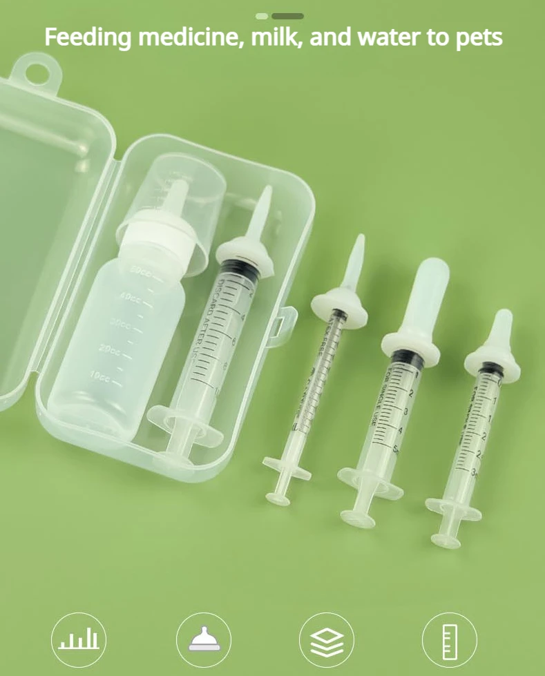 1. Material: Made of silicone material, safe and reliable, with a soft and elastic taste. Suitable for newborn pets and can be used for medication, breastfeeding, and water feeding.
