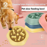 The slow feeder design helps prevent overeating and aids in digestion, promoting a healthier feeding habit for your dog.