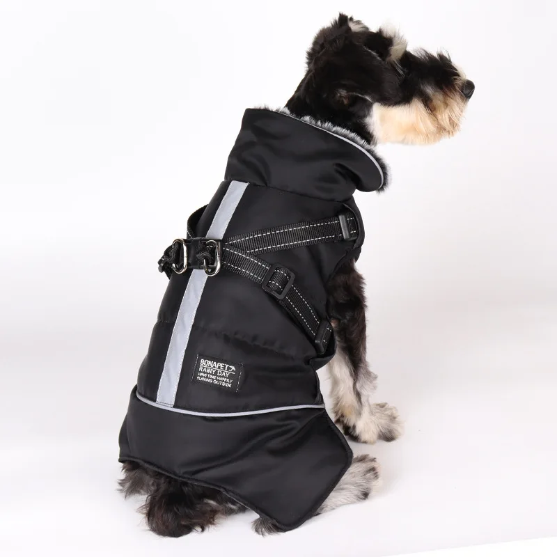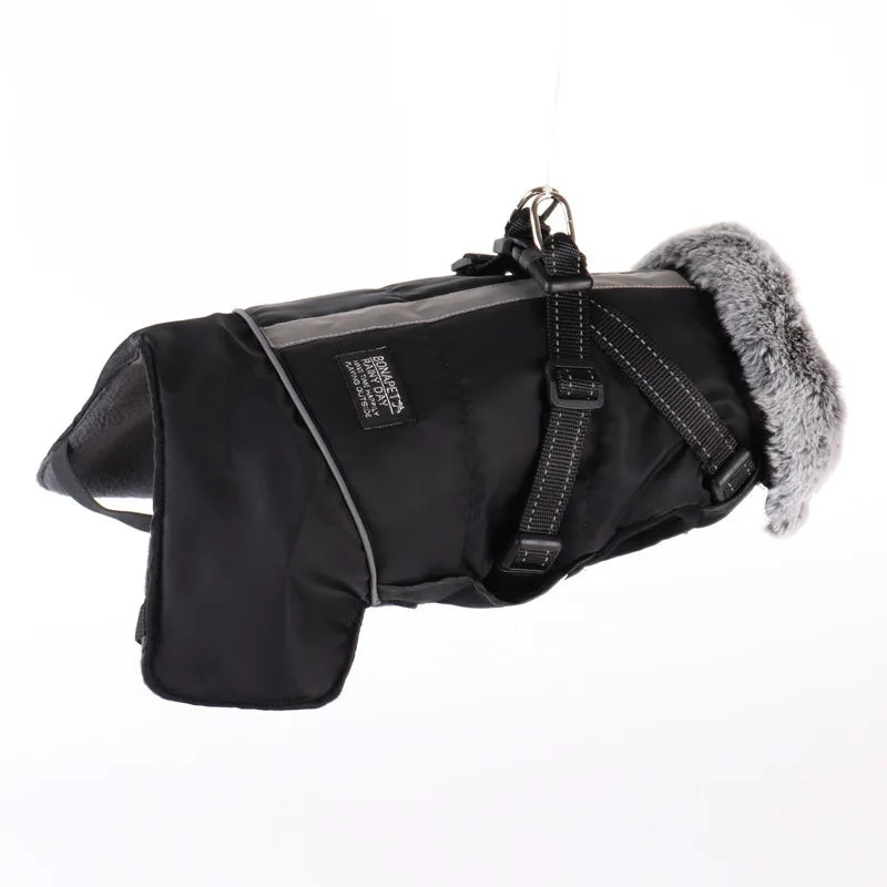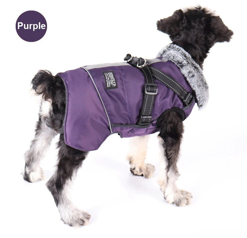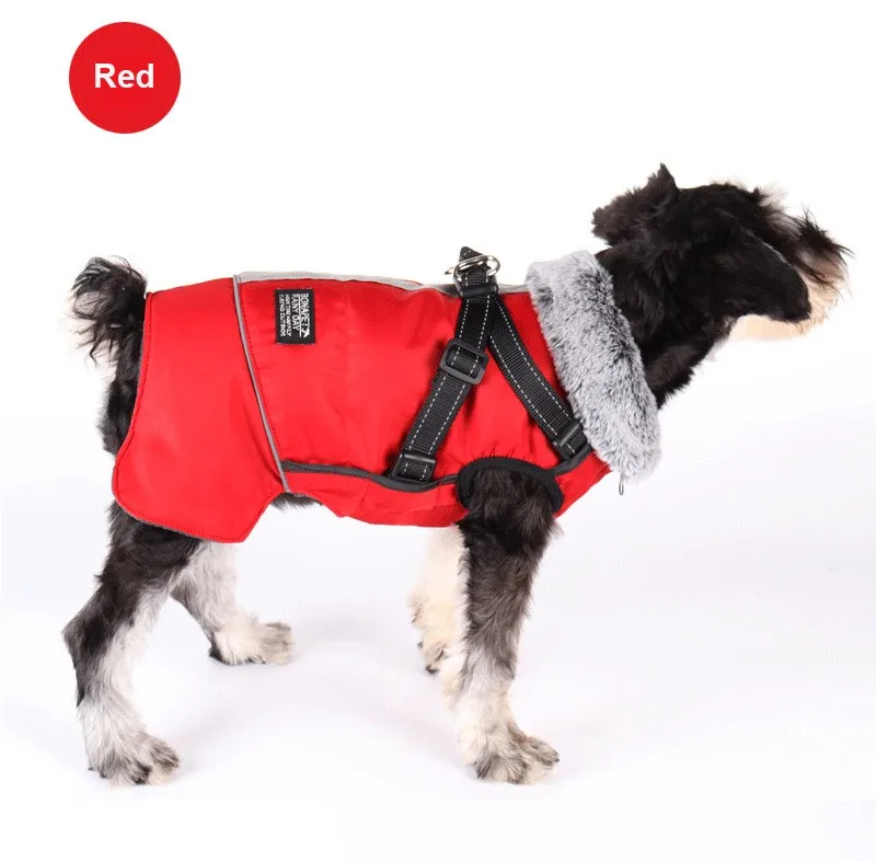 Winter Dog Clothes Waterproof Large Dog Jacket Coats With Harness Warm Fur Collar Clothing For Big Dogs Doberman Greyhound